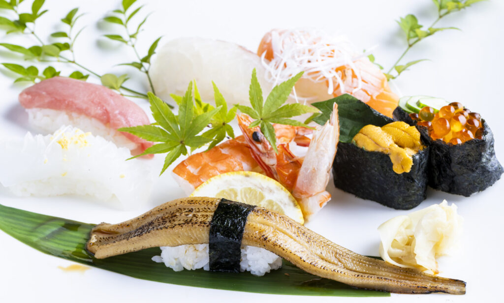 柳川名物のうなぎのせいろ蒸しや、活きのいい旬のお魚を使ったお寿司やお刺身は